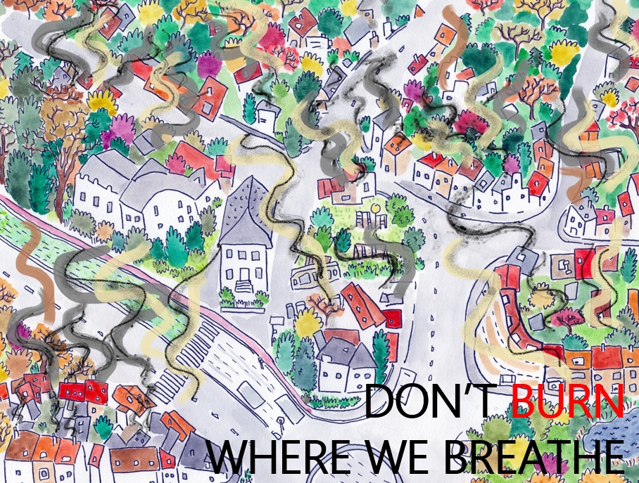 I’m trying to work on images that could be used on posters/flyers/stickers to raise awareness of the harms of wood burning and be distributed in my local area.