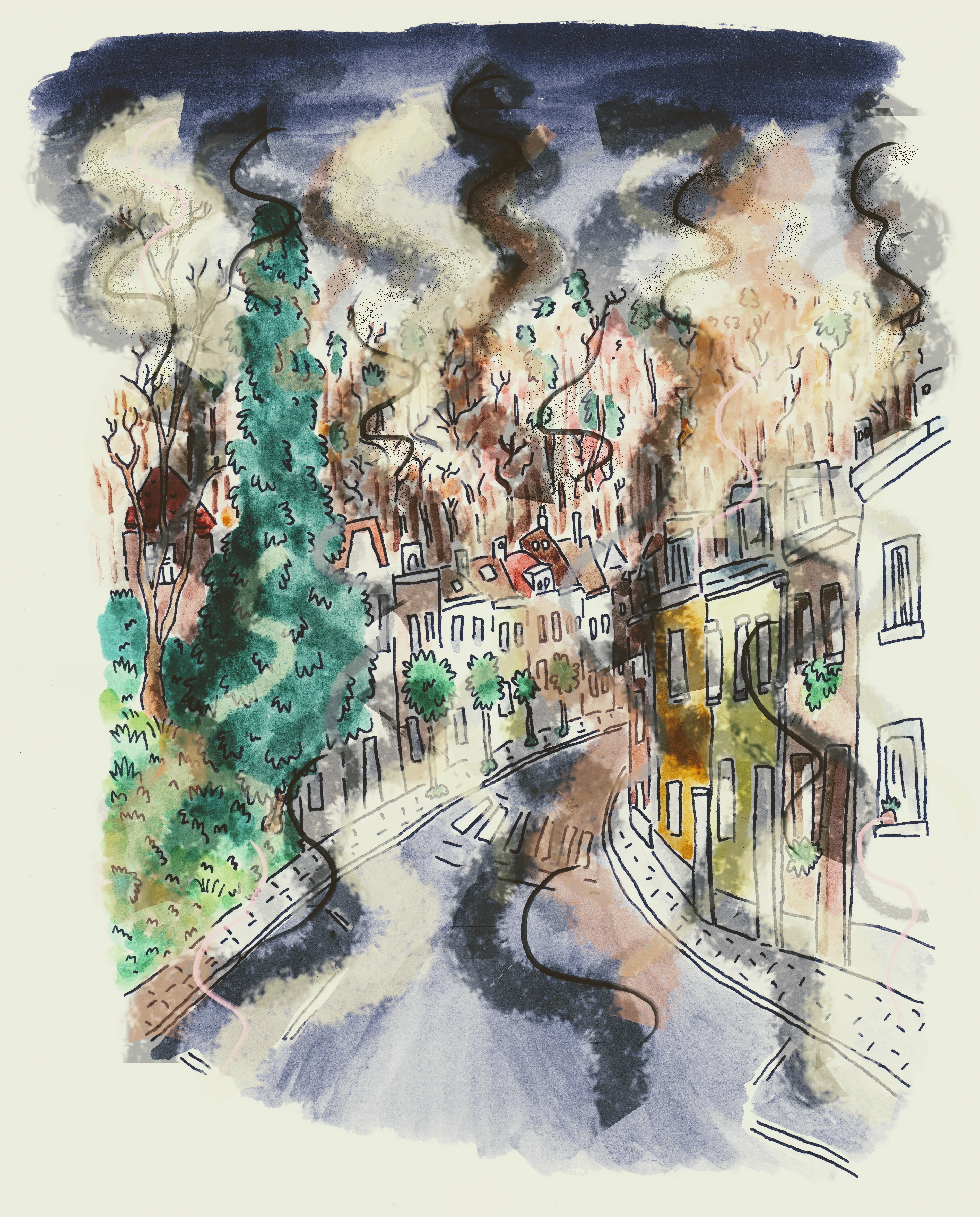 Watermael-Boitsfort before and after the wood fire burners are lit up: